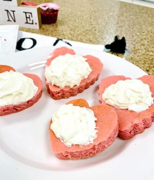 Bake for 15 minutes until golden brown. After Baking, remove from oven and allow to cool slightly. Cut out hearts with large 4-5” Heart Cookie Cutter. Serve Warm. Top with your favorite toppings and enjoy!